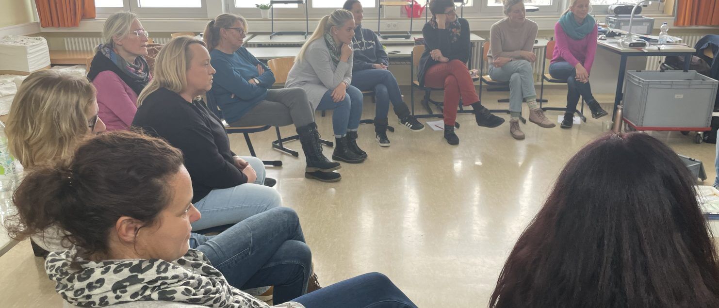 Am Samstag, 02.12.2023 war Frau Kloker vom Deutschen Roten Kreuz zu Gast in der Grundschule Fleischwangen, denn die Betreuerinnen und Lehrerinnen erhielten einen Kurs in „Erste Hilfe am Kind“.