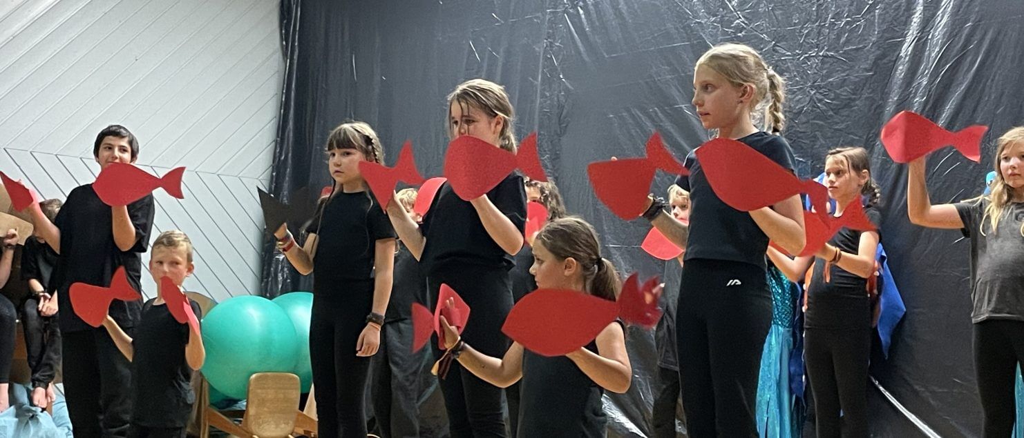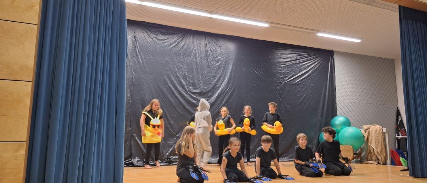 Endlich war es dann um 19 Uhr soweit und die große Theateraufführung „Wasserwelt“ der Dritt- und Viertklässler, die Frau Pfrommer mit den Kindern einstudiert hatte, begann. Der Hai war unterwegs und schaute sich verschiedene Arten von Leben im und am Wasser an: Fische, Enten im Teich, Meerjungfrauen, Strandpartys und Piraten. Für ihr schauspielerisches, gesangliches und tänzerisches Können erhielten die Schülerinnen und Schüler viel Applaus.