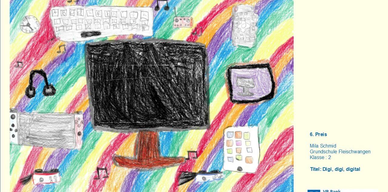 Auch in diesem Jahr nahmen unsere Schüler und Schülerinnen wieder am Malwettbewerb der Volksbank Altshausen teil. Zum Thema „Echt digital“ gestalteten die Kinder viele kreative Kunstwerke. Einige davon wurden am 20.03.2025 bei der Preisverleihung in Altshausen prämiert und die Schüler und Schülerinnen durften schöne Preise mit nach Hause nehmen.