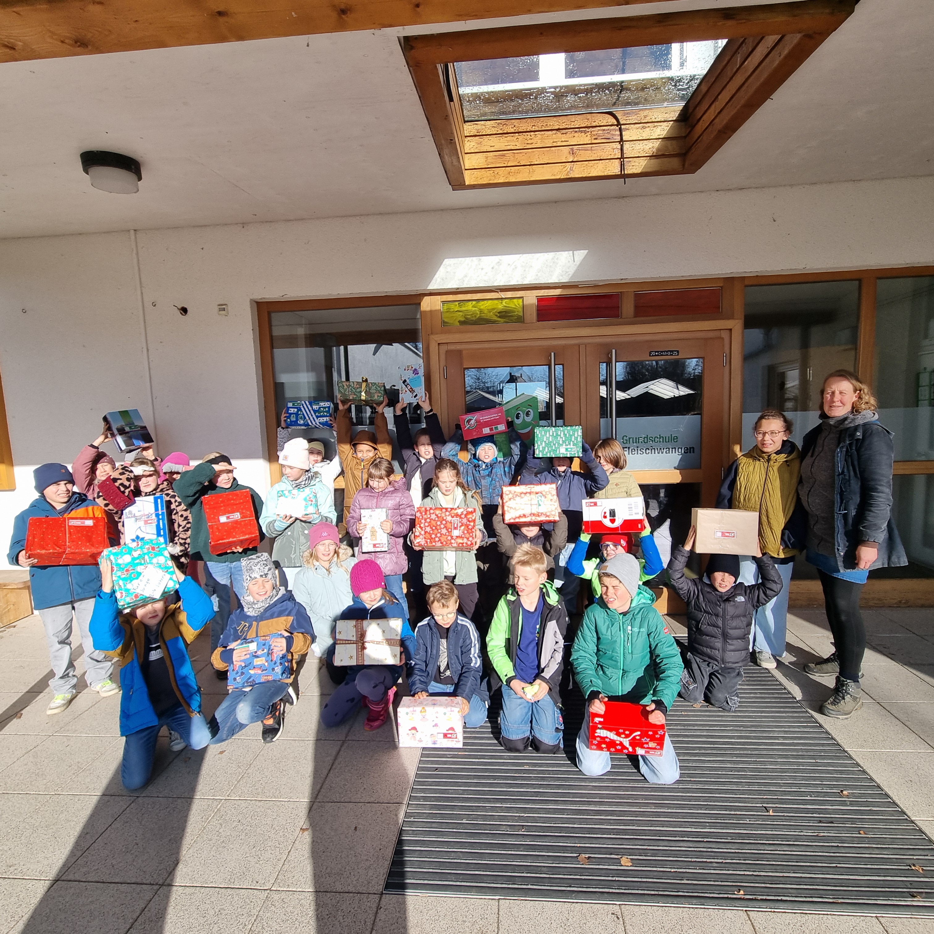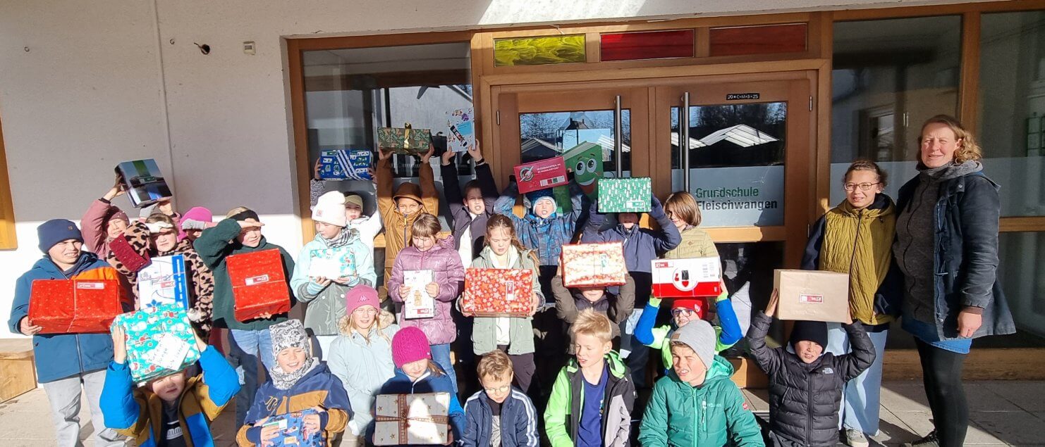 Grundschule Fleischwangen sammelt für Weihnachten im Schuhkarton